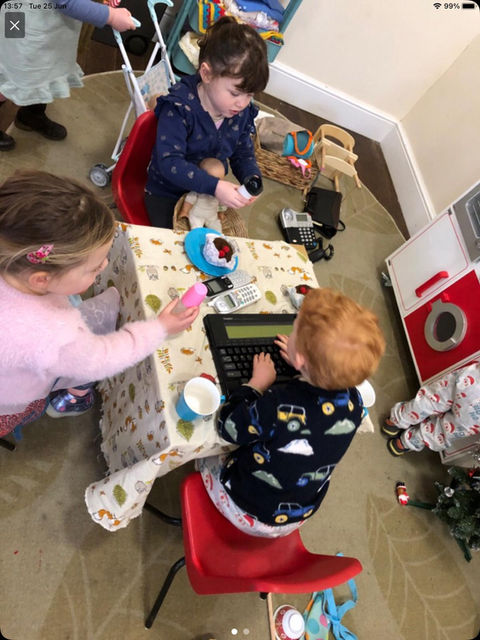 We follow each child's lead in play, following their unique physical, emotional, learning and development needs by; listening to others, observing them and playing alongside them scaffolding their play and development as needed. We offer an enabling environment for high quality play, offering provocation alongside a variety of resources, some continual; wooden blocks, art trolley, home corner, book area.